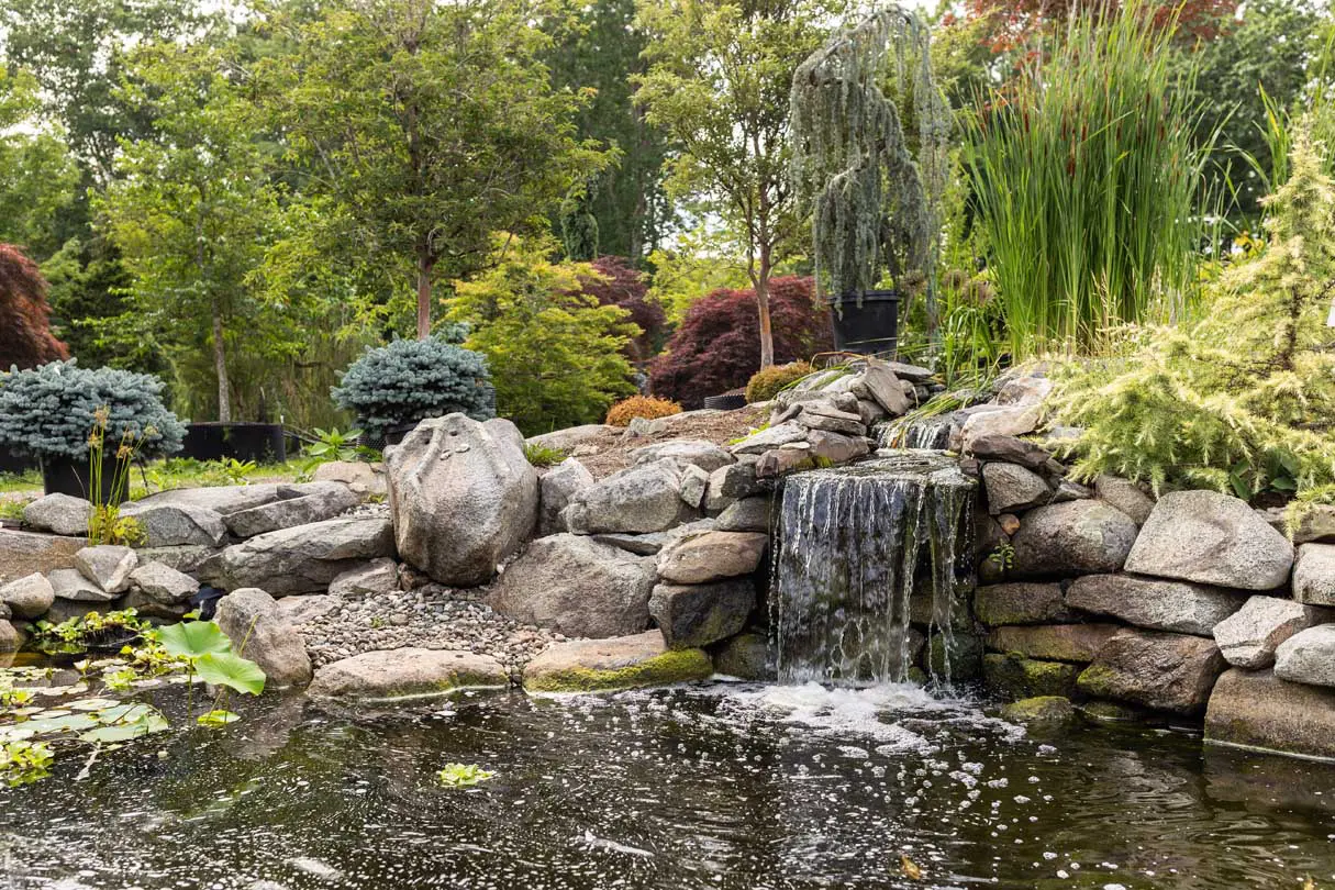 • Ponds, water features, and decorative hardscape accents